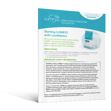 If you are starting LUMRYZ, you may be eligible for free medication if there is a denial or delay in insurance coverage through the LUMRYZ Quick Start program.* Your NCN will work with your healthcare provider to determine if you are eligible for this or other financial assistance programs for LUMRYZ.
